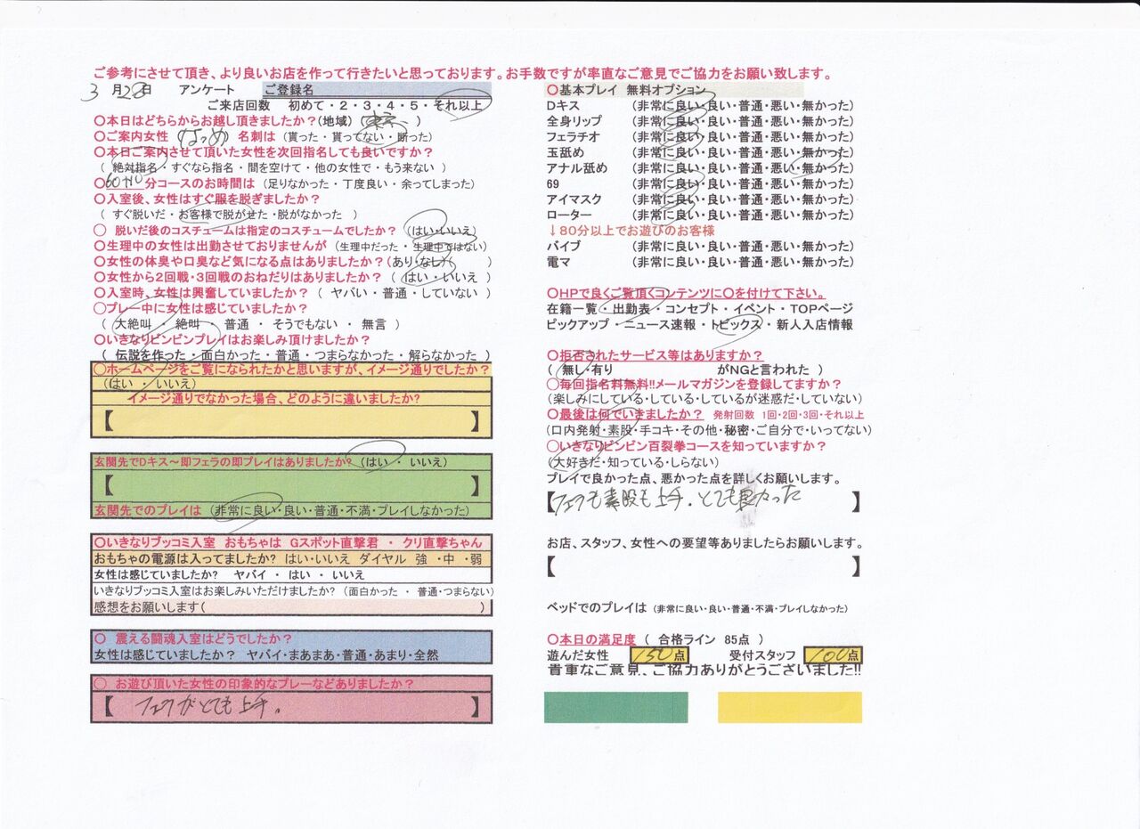 黒髪ロングヘアーの超絶敏感ドスケベ爆誕!!お話大好きで一緒に居て楽しい愛嬌のある女性!性欲は人一倍強くて毎晩欠かさずMy電マでク〇トリスを刺激してオ〇ニーしないと寝られない生粋のオナ〇スト!オモチャが大好物で普段は電マがメインですがバイブもローターも大好き♪普段電マがメインの理由を聞いたら「実は…体調次第ですが潮〇きしちゃう体質で、バイブとかだとベットがびしょびしょになっちゃうんです…///」と恥ずかしながら教えてくれました!!責め好き男性大歓喜の情報GET!!d(゚∀゚d)超敏感体質であっという間にイキまくり潮〇きしちゃうことも多々あるなんて…控えめに言って最高です!ご奉仕精神も抜群で男性の感じる姿を見るのも大好きでプライベートでも玄関先でフェ〇チオしちゃった過去もあるくらいめっちゃド変態な女性♪キスもフェ〇チオも積極的に出来ちゃう上に責めればビクビク身体震わせイキまくっちゃう…そこに潮吹きしやすい体質だなんてエロ過ぎるぜぇぇ!プレイ中は超絶エロくプレイ外もお話大好きと最初から最後まで満足度激高のドスケベと最高の時間をお過ごし下さいませ♪ご予約必須ですよぉぉ!!!